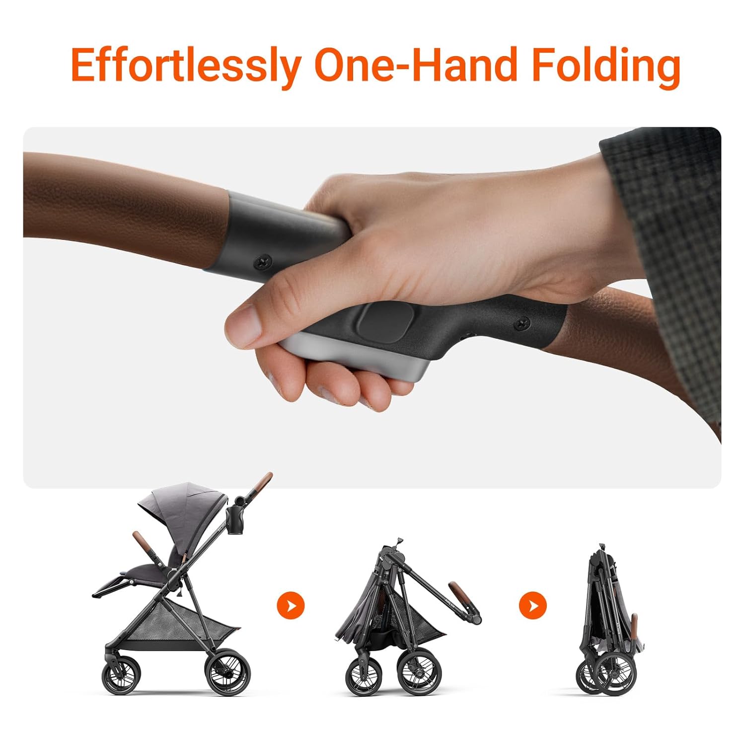 Lightweight and versatile stroller with car seat compatibility, adjustable recline, and smooth all-terrain wheels.